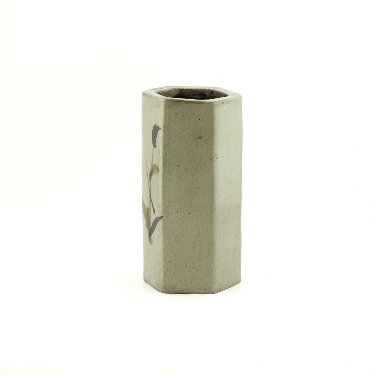 Stoneware hexagonal vase with iron glaze brushwork.