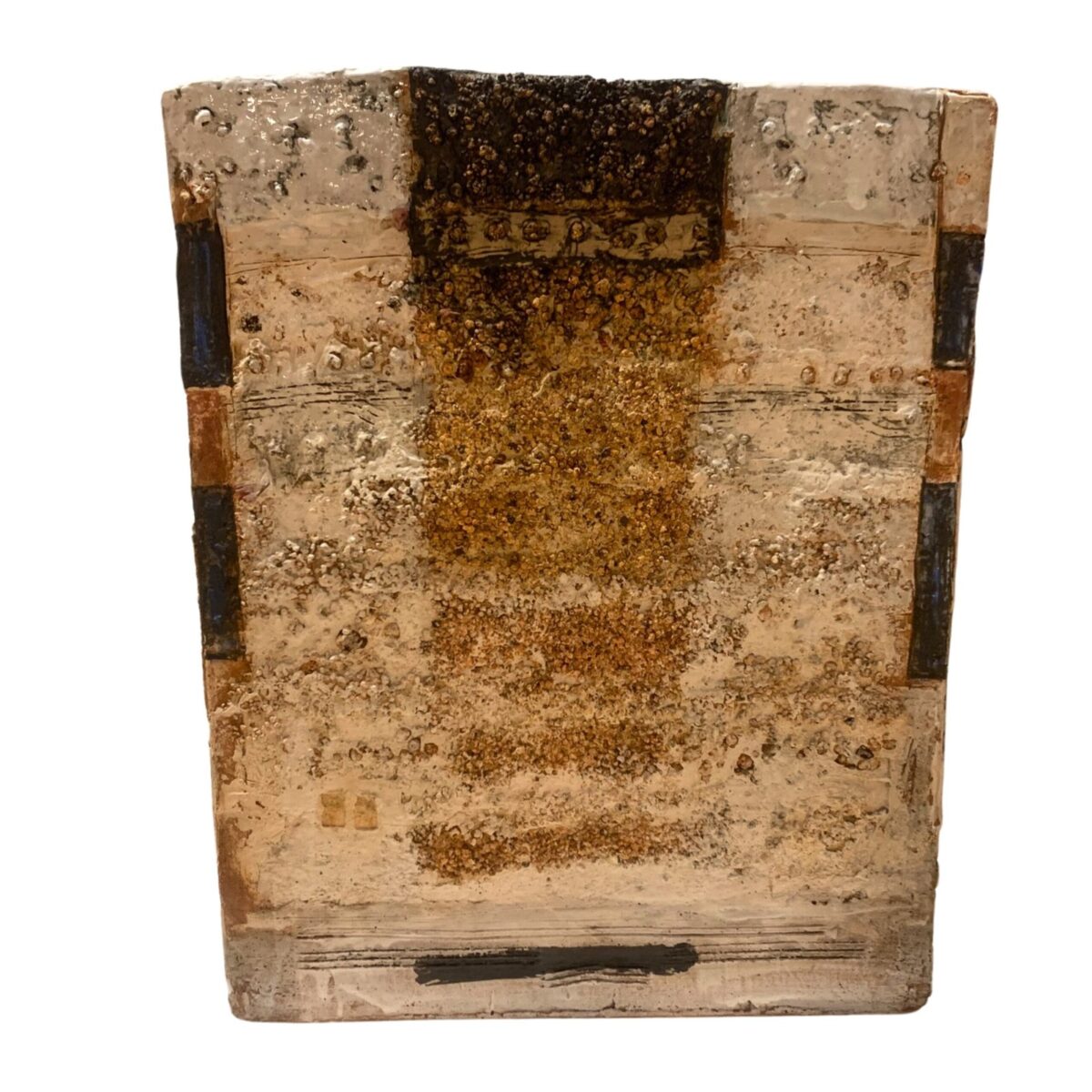 Large slab form – stoneware with ochre glazes. Impressed seal to base. H: 59cm, W:48cm, D: 13cm.
