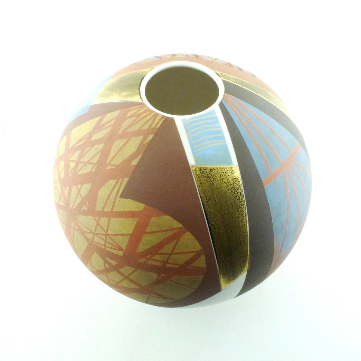 Thrown porcelain with gold lustre. Signed and dated by artist.