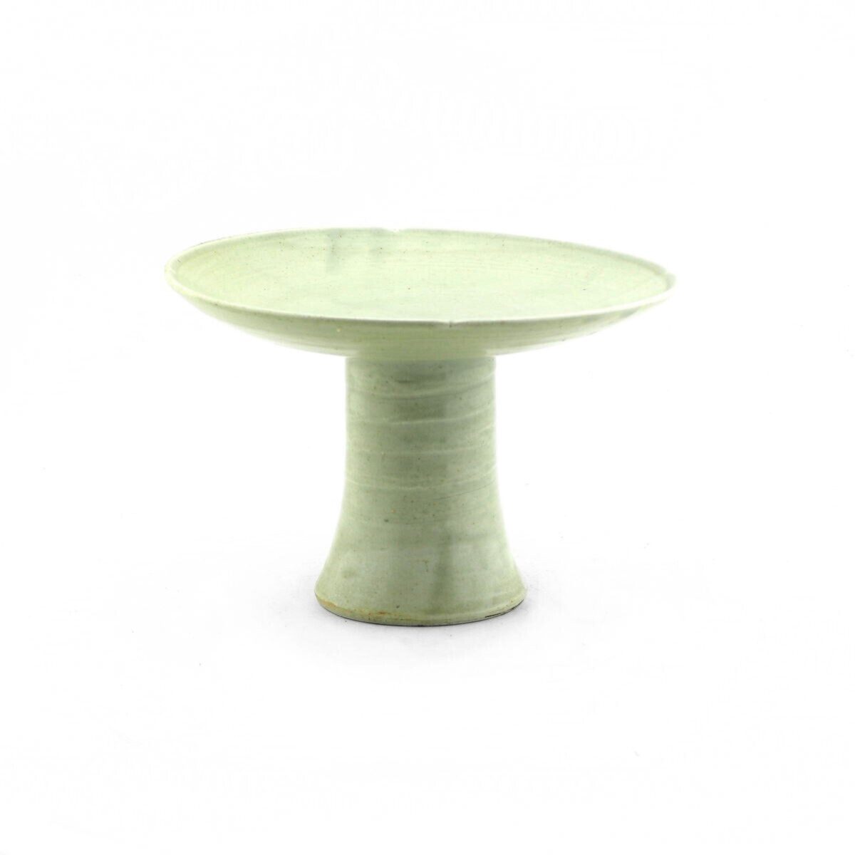Porcelain pedestal bowl with ying ching celadon glaze.